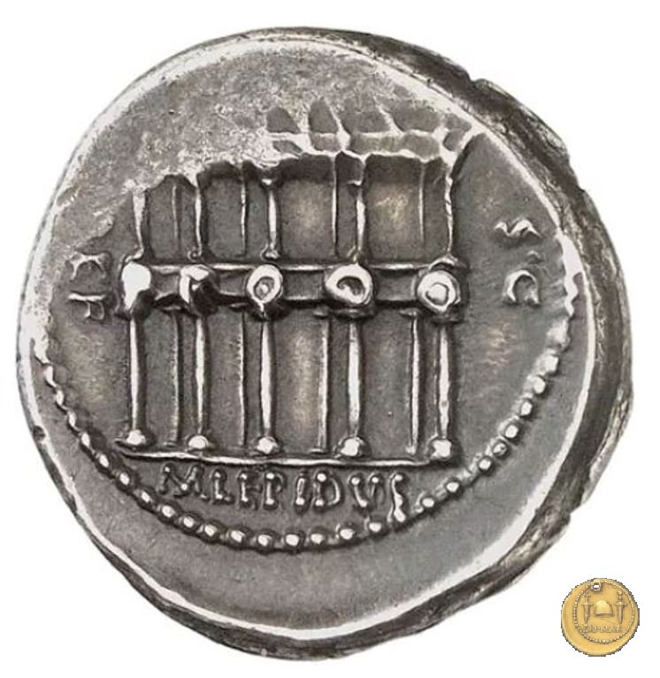 419/3 - denario M. Aemilius M.f.Q.n. Lepidus (61 BC - Roma) Artemide LIX - lotto 470 (R) Verso | Artemide Aste | Sat 14/10/23 - 21:12 | ||