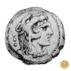 335/7 - quadrante C. Publicius Malleolus C.f. (90 BC - Roma) Disegno della moneta (conservata presso la Bibliothèque Nationale di Parigi) tratto da "Saggio di catalogo generale delle monete consolari anonime con simboli" di Santini Alberto, 1939. Dritto