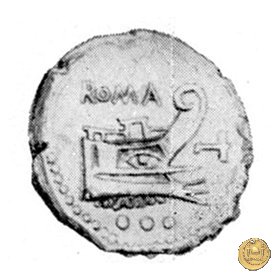 335/7 - quadrante C. Publicius Malleolus C.f. (90 BC - Roma) Disegno della moneta (conservata presso la Bibliothèque Nationale di Parigi) tratto da "Saggio di catalogo generale delle monete consolari anonime con simboli" di Santini Alberto, 1939. Verso