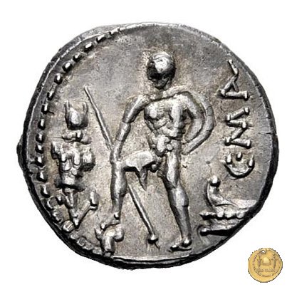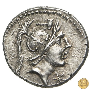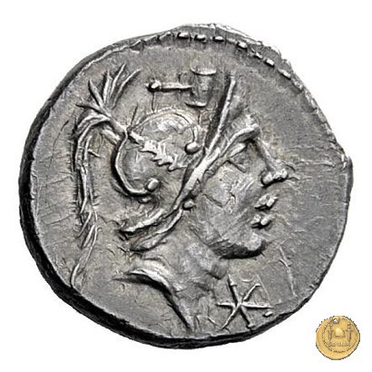335/7 - quadrante C. Publicius Malleolus C.f. (90 BC - Roma) Disegno della moneta (conservata presso la Bibliothèque Nationale di Parigi) tratto da "Saggio di catalogo generale delle monete consolari anonime con simboli" di Santini Alberto, 1939. Verso